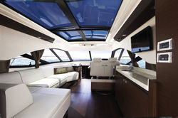 There comes a peace at the very center of everything, when the world pivots around you in perfect balance. Some people spend a lifetime trying to find this spot. Others simply settle into the solarium-like covered cockpit of the 510 Sundancer. Light streams in through endless acres of glass above and to every side and even follows you when you head below under SkyFlow's glass cathedral ceiling over the galley and salon.
