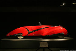 Thought to be a Figoni et Falaschi roadster, it traded hands several times and went through four restorations. The third of which was by Andre Lecoq of Paris who extensively modified it by fashioning a new panel to conseal the roof when folded down, a new interior, new bumpers and new chrome accents along the fender line. In 1990 it was sold at the Barrett-Jackson as a 'Figoni et Falaschi' auction for 1.4 million. By the time the Hartman V16 reached the Blackhawk Collection where it can currently seen at the museum, it was painted resale red and the original Willy Hartmann plaque on the dashboard was replaced with a fake Figoni et Falaschi unit. Most of the chrome, especially on sides were fabricated and a new recessed grill was fitted. While more elegant, the cabriolet has lost many of its original design traits.